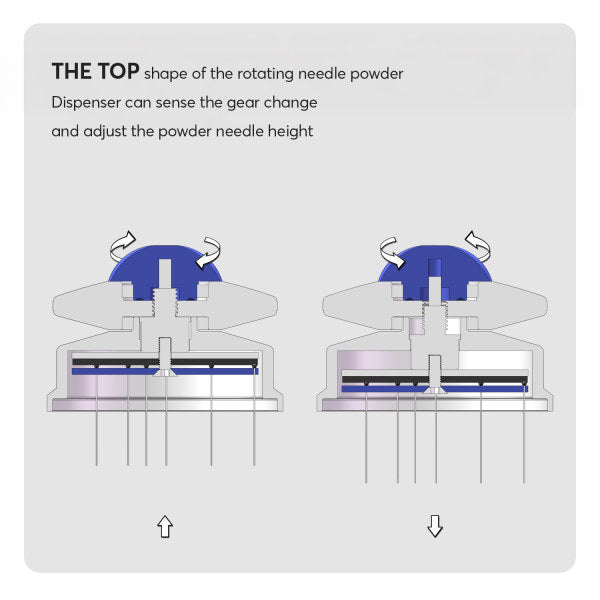 Adjustable Needle Height System: Rotating needle-style brush delivers top-mounted distribution—reversible and detachable for variable-depth adjustment, enabling precise powder needle penetration control for optimal particle separation.
