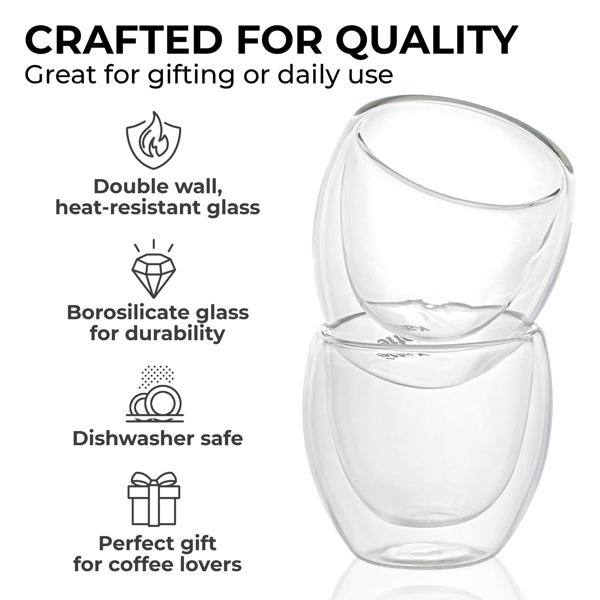 • ELEGANT AND PRACTICAL. Beautiful design with double-walled glass to keep the cup cool to the touch and coffee hot for the soul.