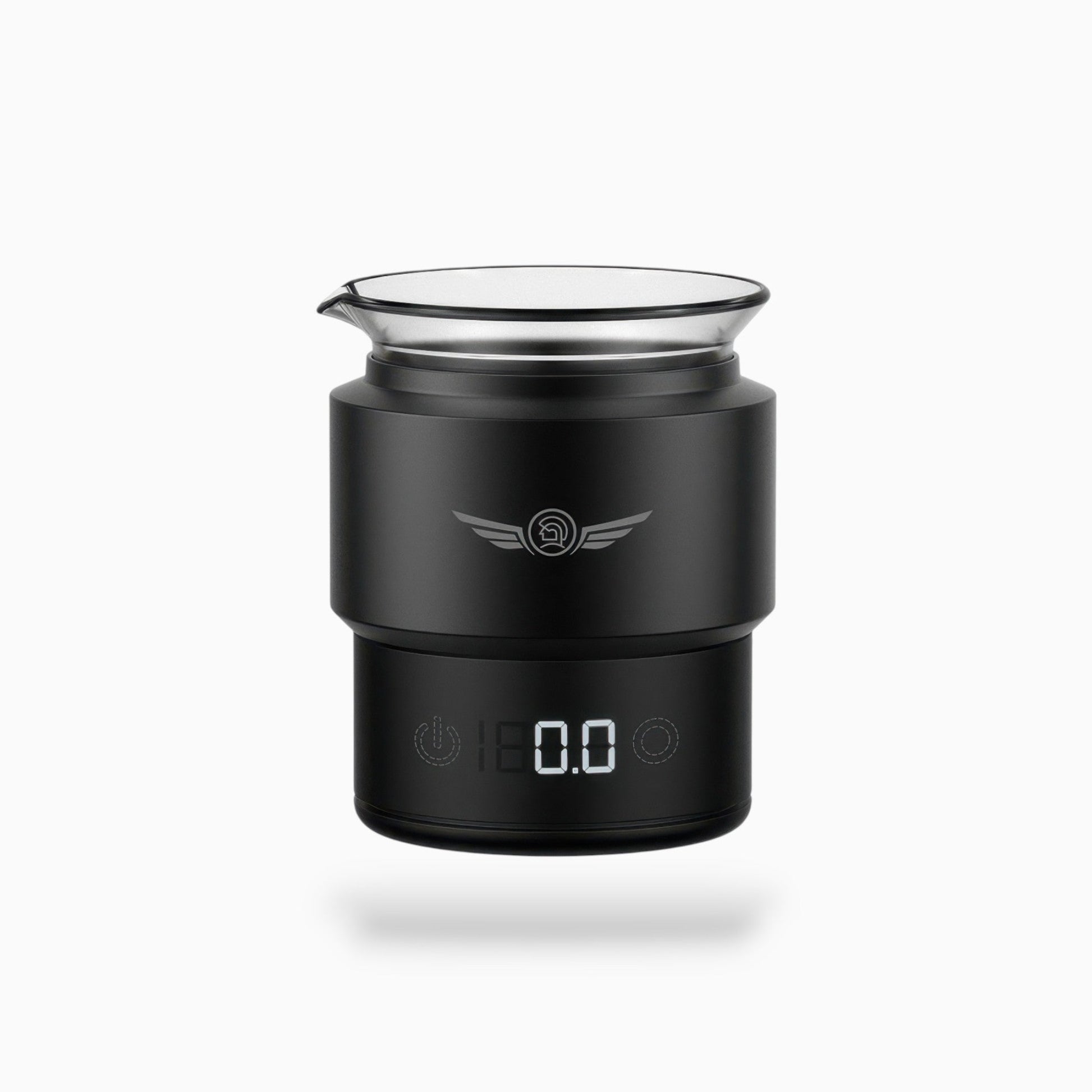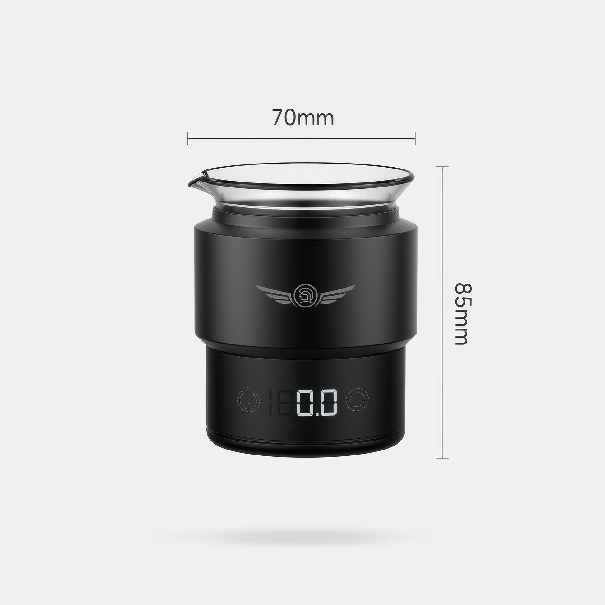 60mL Graduated Glass Cup: Leak-resistant receiving cup with clear measurement markings, eagle-beak spout for controlled pouring, and silicone base for added stability.