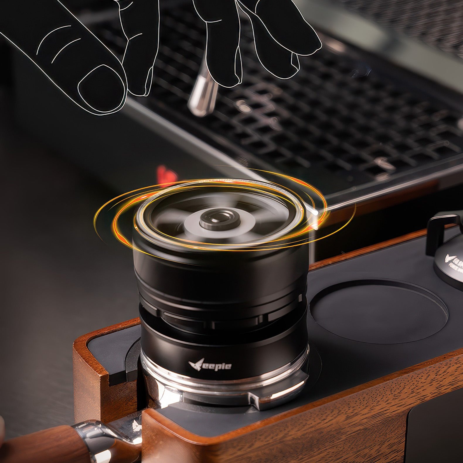 Professional Gravity Coffee Distributor - 58.5mm dual-axle system with smooth rotation technology and 70% reduced resistance for effortless powder leveling.