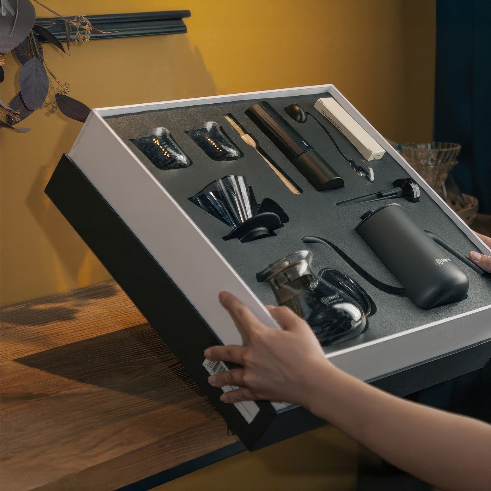 | Master Set | Hammer Mug, Cleaning Brush, Smart Electronic Scale, Z3 Grinder, V01 Filter Paper, Diamond Glass Filter Cup, Original Sharing Pot, C07 Pro Hand Pour Kettle |