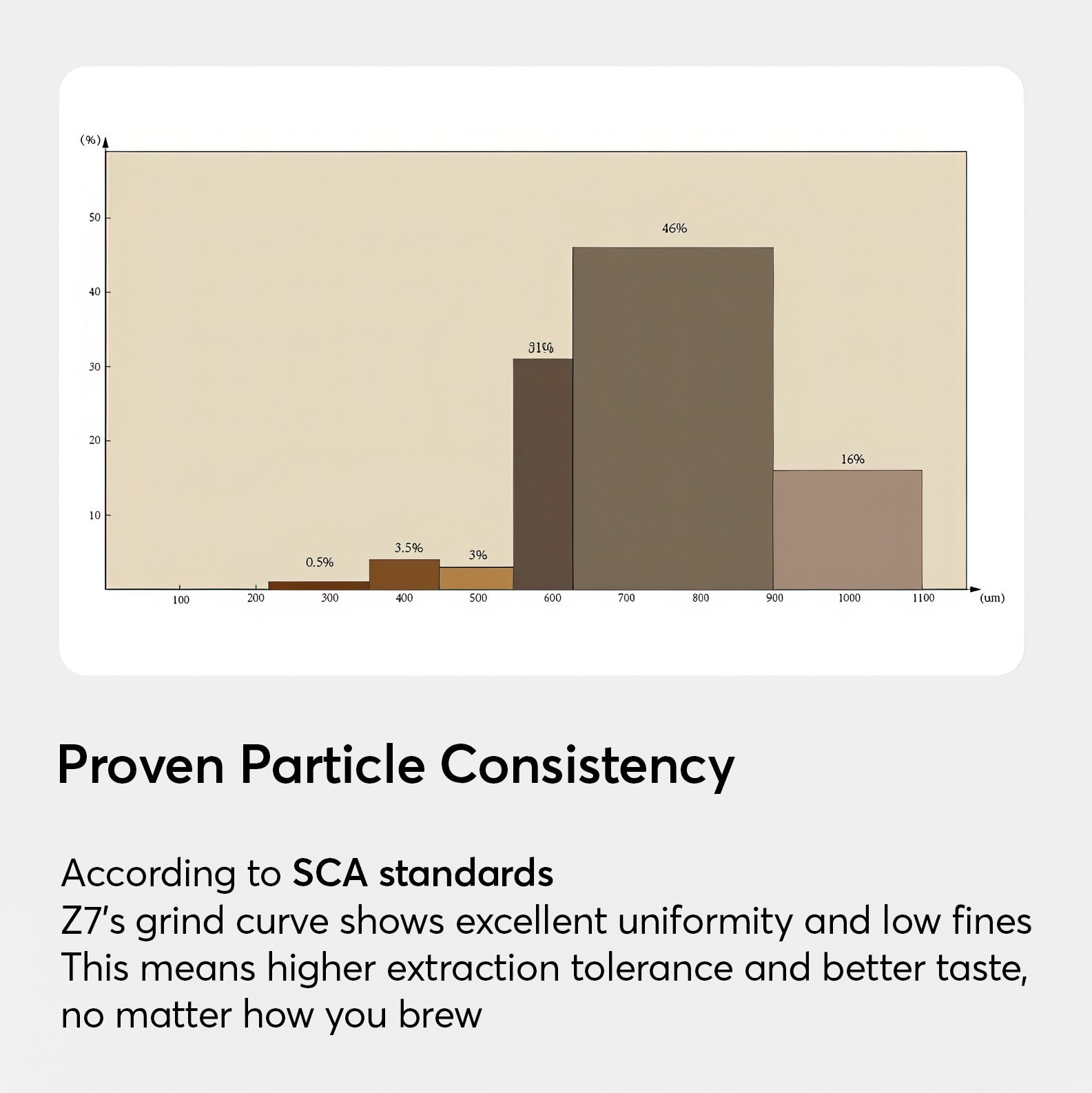 • Proven Particle Consistency: Grind curve meets SCA standards with low fines, ensuring higher extraction tolerance and superior flavor development.